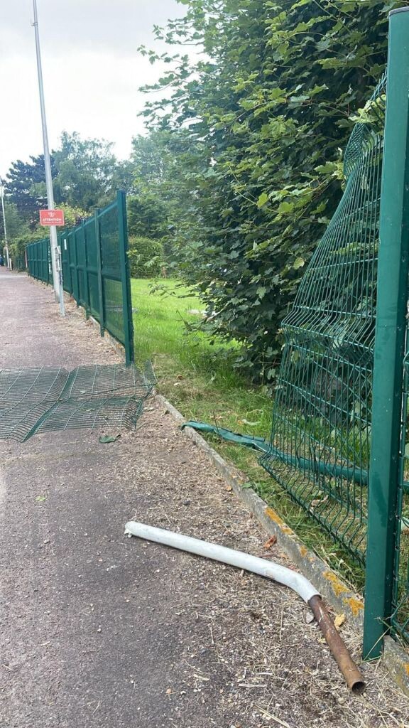 Clôture et débris au sol